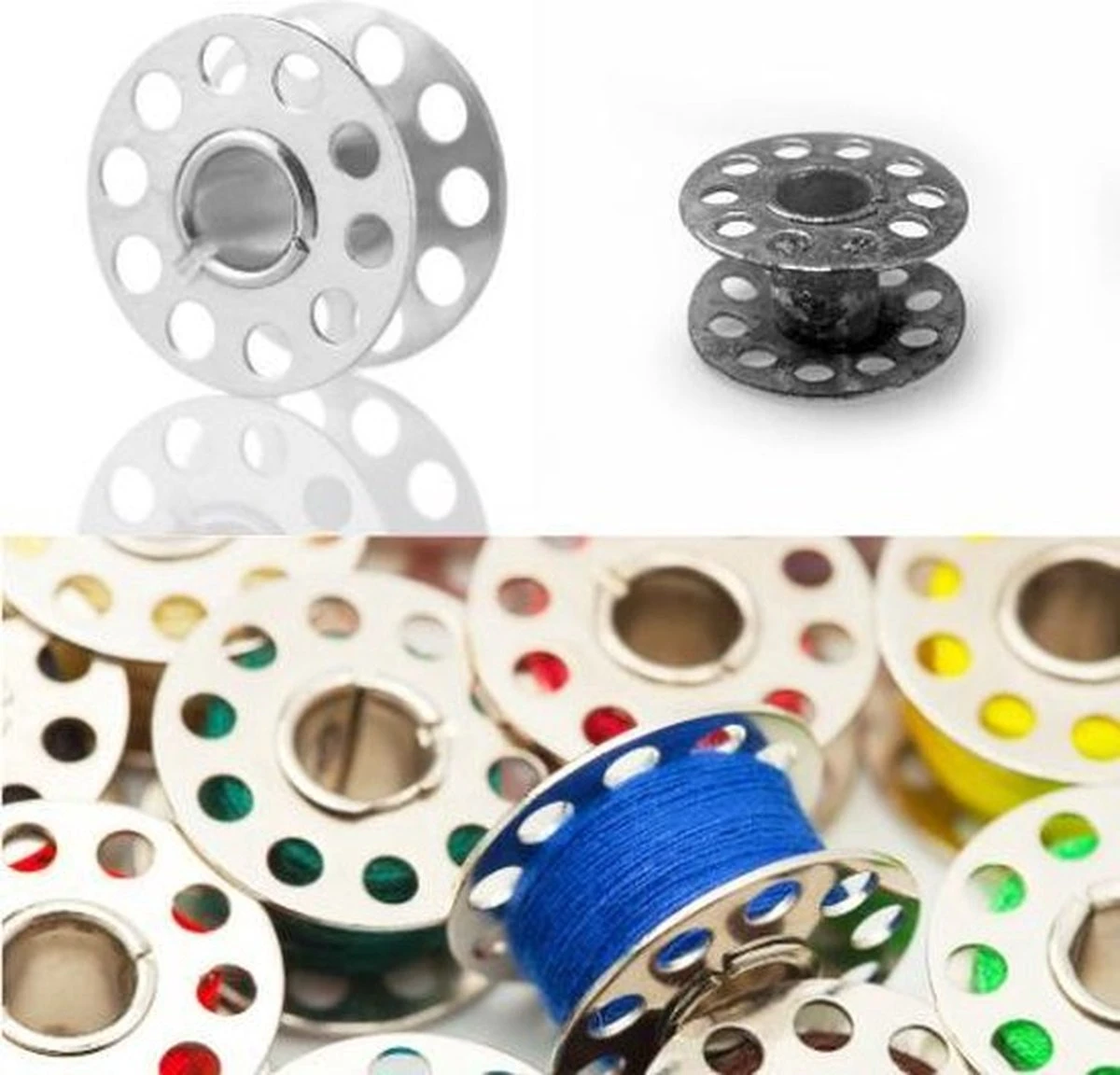 - Afmeting spoeltjes: 2 x 1 centimeter: universel maat voor naaimachines
