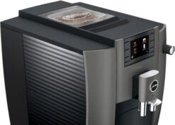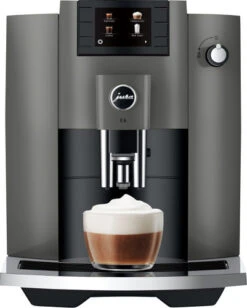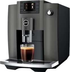 De JURA E6 Dark Inox (EC) zet naast zwarte koffiespecialiteiten ook een cappuccino met één druk op de knop. De melkslang zorgt voor een zacht melkschuim. Deze koffiemachine is echt voor jou weggelegd als je een cappuccino liefhebber bent. Naast de cappuccino, zet de koffiemachine ook allerlei andere koffies. Zo kies je uit een espresso, koffie, caffè barista, lungo barista, espresso macchiato. Naast koffies tap je ook heet water voor een kopje thee. Je bedient het apparaat via het overzichtelijke kleurendisplay met toetsen. Hierop kies je tussen verschillende sterktes, hoeveelheden en temperaturen voor je koffie. De Professional Aroma Grinder zorgt ervoor dat de machine alle koffiebonen op hoge kwaliteit maalt. Zo komen alle aroma’s het beste vrij.