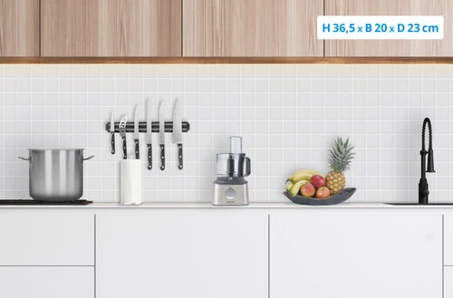 Je ruimt het snoer gemakkelijk op in het opbergvak aan de achterkant van de foodprocessor.