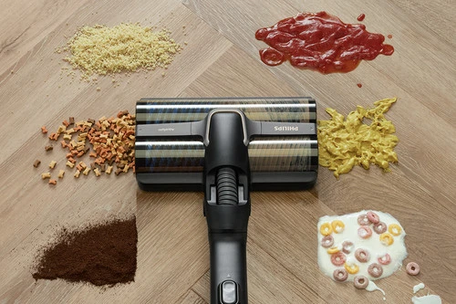 Met de dweilfunctie die ook stofzuigt, verwijder je zowel yoghurt als kruimels in een handomdraai van de vloer.
