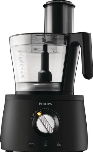 Je haalt met de Philips HR777690 een veelzijdige foodprocessor in huis. De keukenmachine heeft namelijk verschillende accessoires, zodat je verschillende bereidingen maakt. Je stelt met de draaiknop één van de 12 snelheidsstanden of de pulsestand in. Wil je ijs crushen, brooddeeg kneden of slagroom kloppen? Dan gebruik je de automatische programma¿s. Handig, zo denk je niet meer na over de juiste snelheid. Je krijgt altijd het beste hak- en snijresultaat, dankzij de PowerChop technologie. Deze technologie combineert namelijk een speciale snijhoek met scherpe roestvrijstalen messen. De losse onderdelen reinig je na gebruik in de vaatwasmachine.