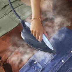 Het strijkijzer is licht en prettig in gebruik. Het glijdt moeiteloos over de kledingstukken en vermindert de belasting van jouw pols. Door het minimale gewicht van slechts 800 g is het strijkijzer ook handig om gordijnen en hangende kleding verticaal te stomen.