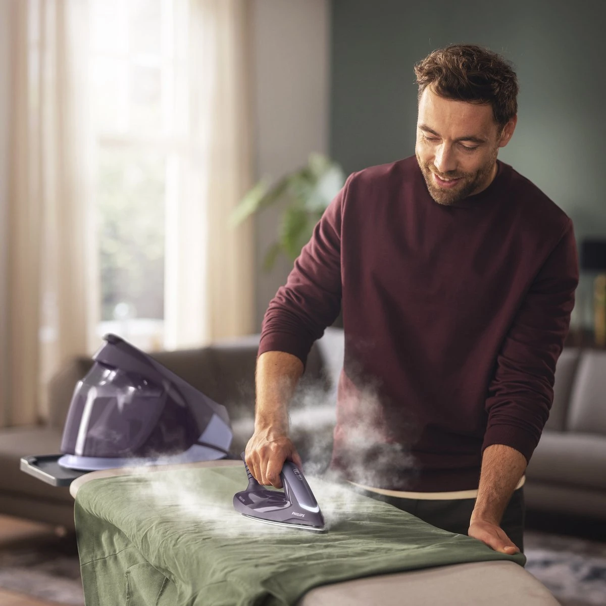 De stoomgenerator die is ontworpen voor jouw comfort en gemak. De Philips PerfectCare 7000-serie PSG7150/30 beschikt over een nieuwe bewegingssencortechnologie. Er komt krachtige automatische stoom vrij wanneer je begint met strijken. Vanaf nu heb je geen last meer van brandplekken aan strijkbare kledingstukken door de OptimalTEMP-technologie.