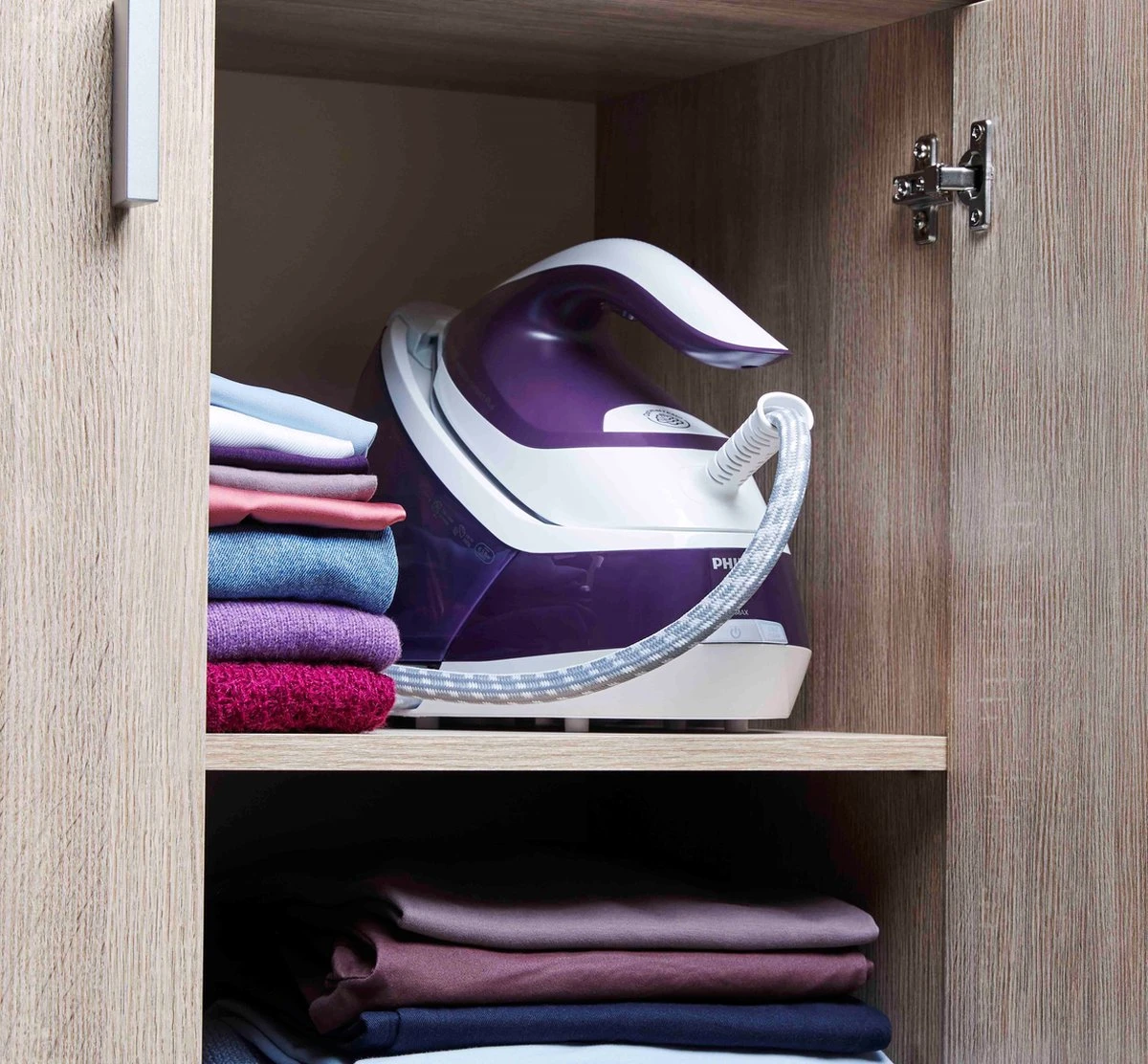 30 minuten eerder klaar met strijken, vergeleken met het Philips-stoomstrijkijzer Azur*. Snel en gemakkelijk met de Philips PerfectCare Compact Plus GC7933/00 stoomgenerator. Je hoeft je geen zorgen te maken over brandplekken en bent sneller klaar met twee keer zoveel stoom als een stoomstrijkijzer. Je hoeft geen instellingen te wijzigen, krijgt snelle resultaat en verwijdert je kreuken makkelijker. Je wasmand is in een handomdraai leeg.